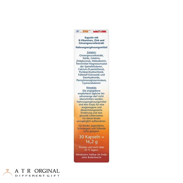 - حاوی 250 میلی گرم عصاره جینسینگ، ویتامین های گروه ب و زینک