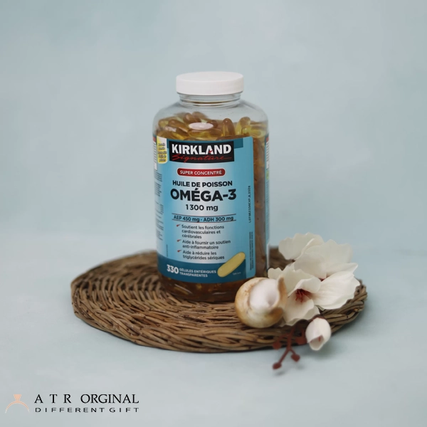 - امگا ۳ کرکلند Kirkland Omega-3 دوز مؤثری از امگا ۳ را فراهم میکند که برای مصرف روزانه مناسب است و به جبران کمبود این ماده در رژیم غذایی کمک میکند.