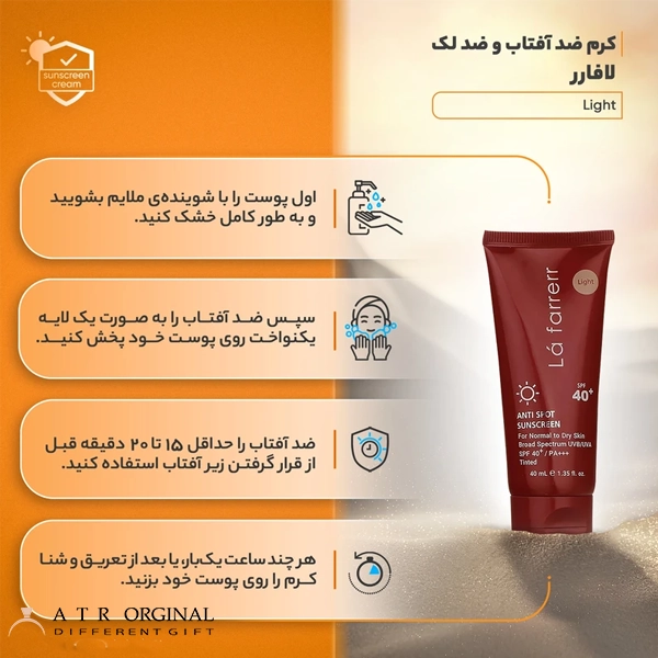 کرم ضدآفتاب رنگی لافارر مناسب پوستهای خشک و معمولی مدل SPF40-Light