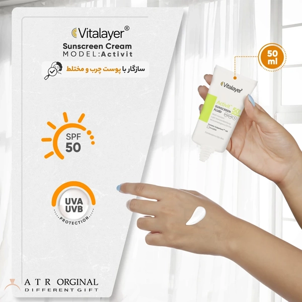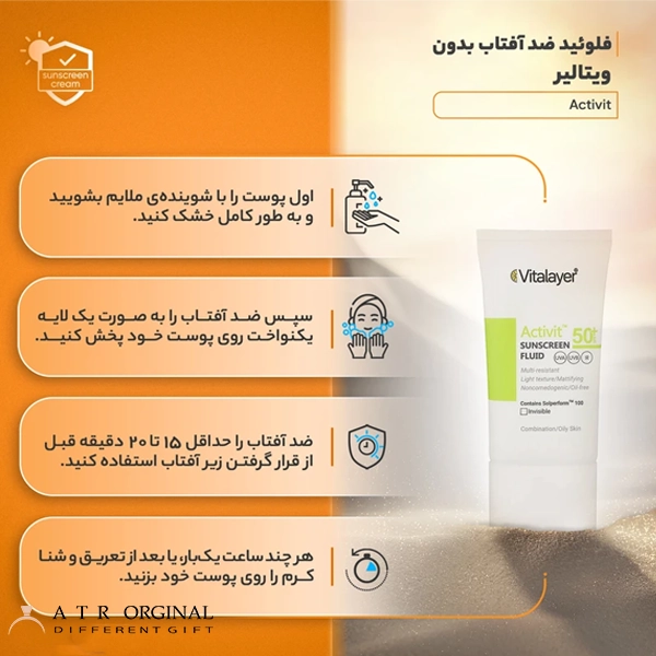 فلوئید ضدآفتاب بیرنگ ویتالیر SPF50 مدل Activit